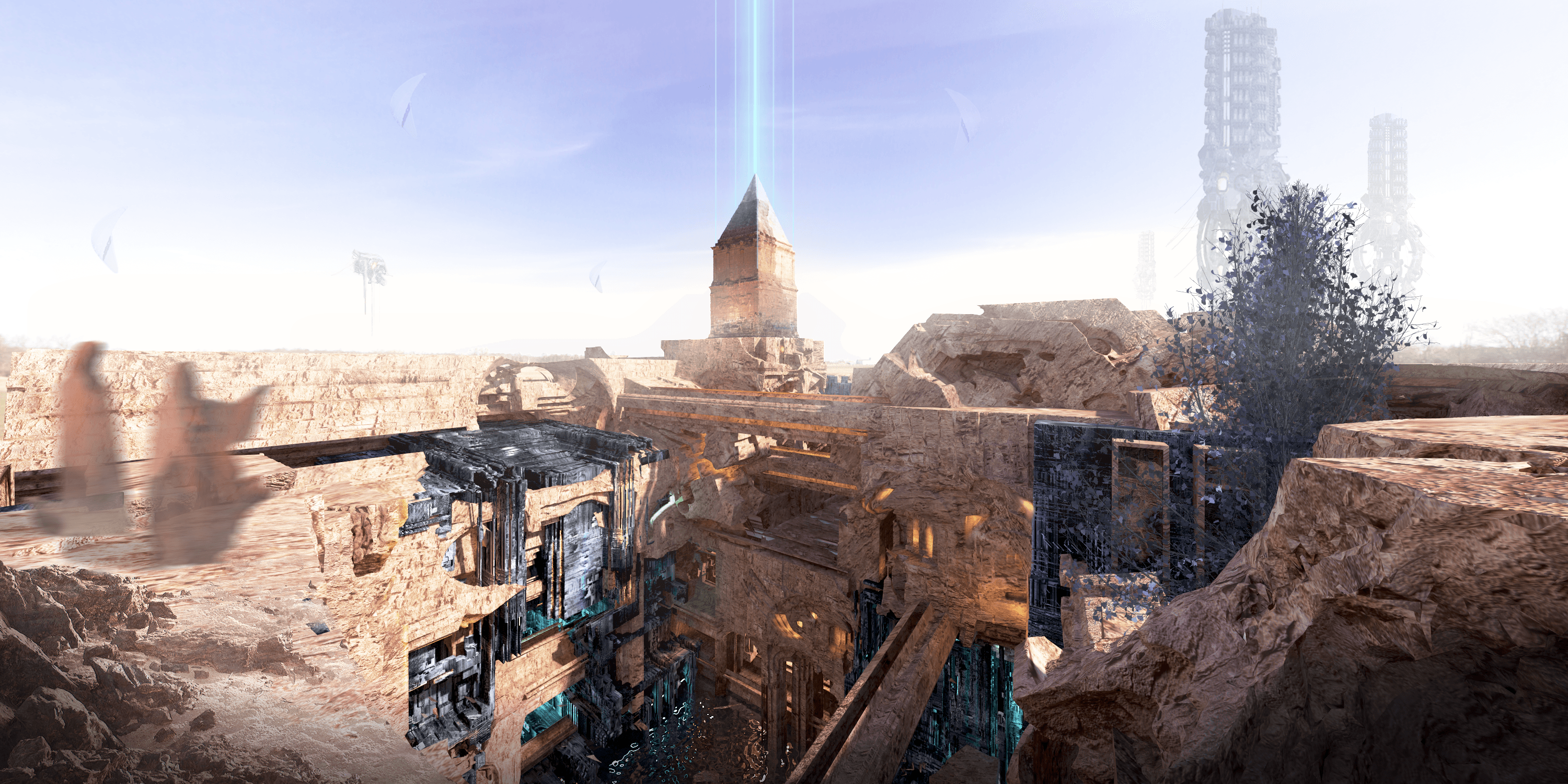 This thesis explores the architectural manifestation of Syncretic Pilgrimage within a speculative post-human future. Situated in the Hermel landscape, the project proposes "The Epicenter"—a monumental structure that serves as both a living record of history and a vessel for future transcendence. By dismantling the strict dualism between the biological and the mechanical, the design creates a space where humans, machines, and landscapes coexist as equal users. The architecture is envisioned not as a static object, but as a simultaneous monument and ruin, recording past events while actively generating new ones.